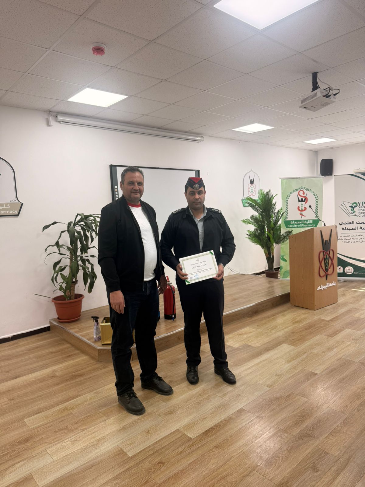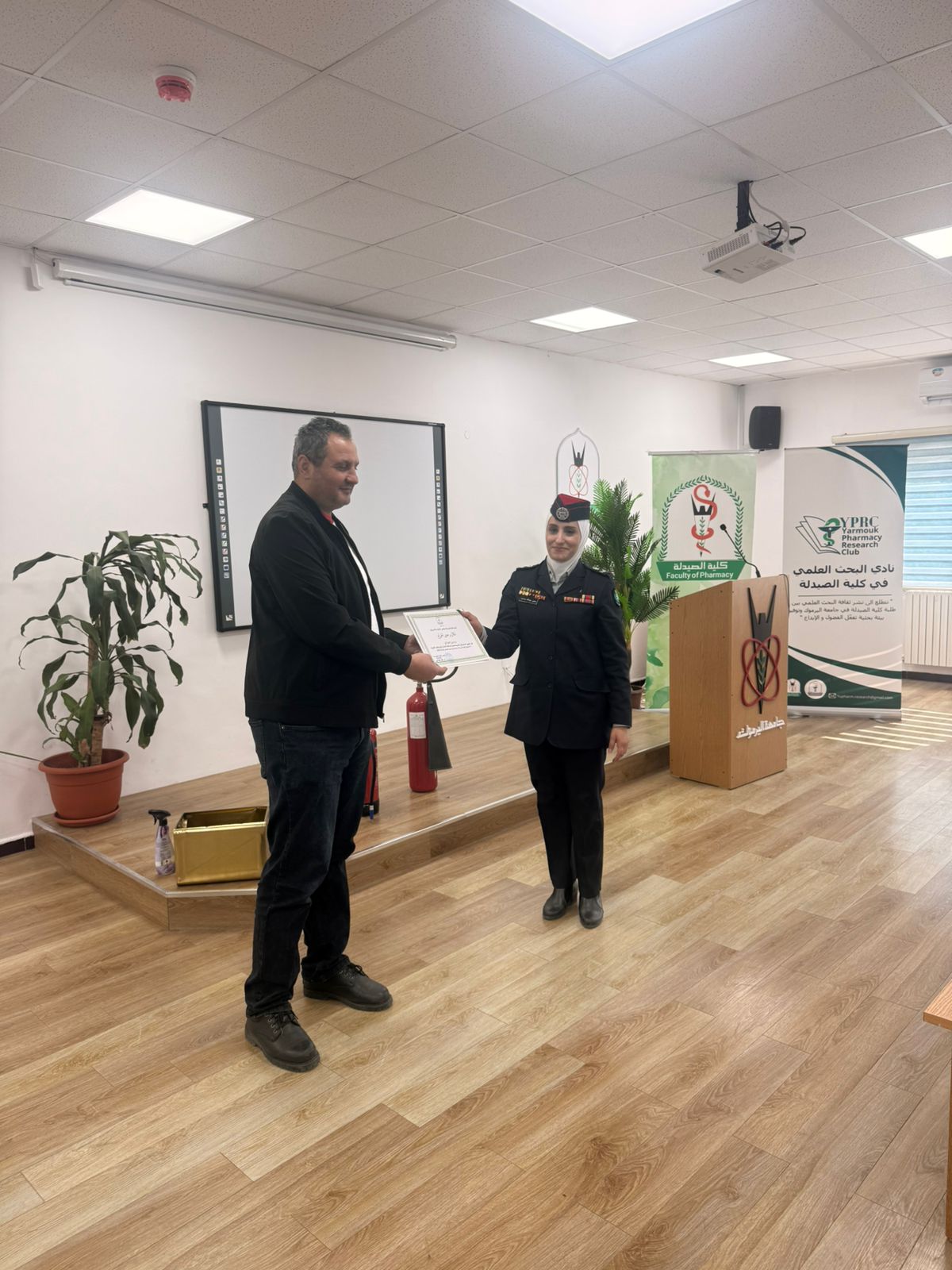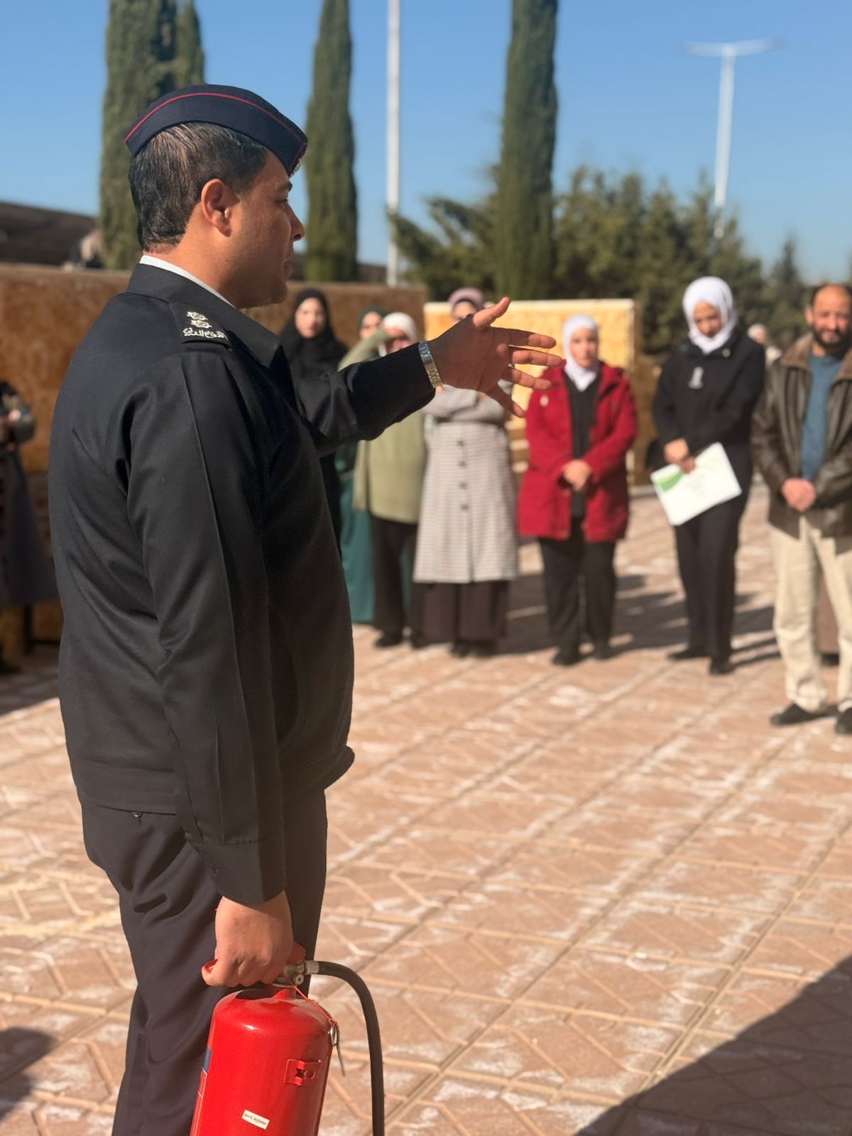 وقد قدّم المحاضرة كلٌّ من النقيب ألاء شتات، والملازم أول يوسف شريفين، والملازم حنين الجراح من مرتبات مديرية الدفاع المدني، حيث تناولوا خلالها مجموعة من المحاور المهمة المتعلقة بإجراءات السلامة العامة، وأساليب التعامل الصحيح مع الحالات الطارئة، ومبادئ الإسعافات الأولية الواجب اتباعها في مختلف الظروف.