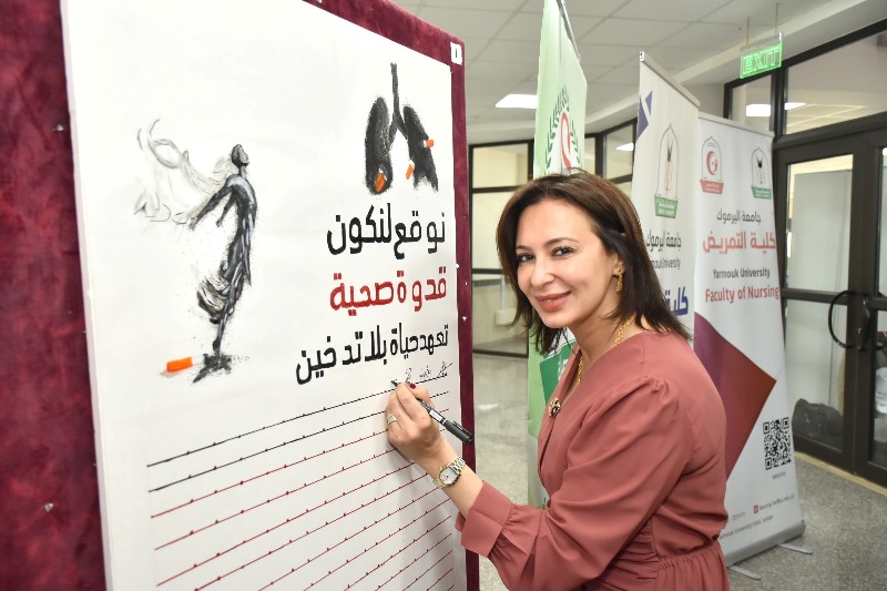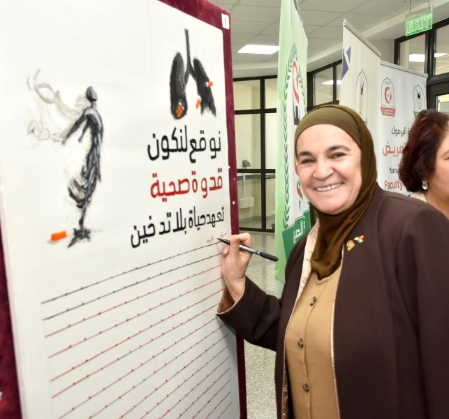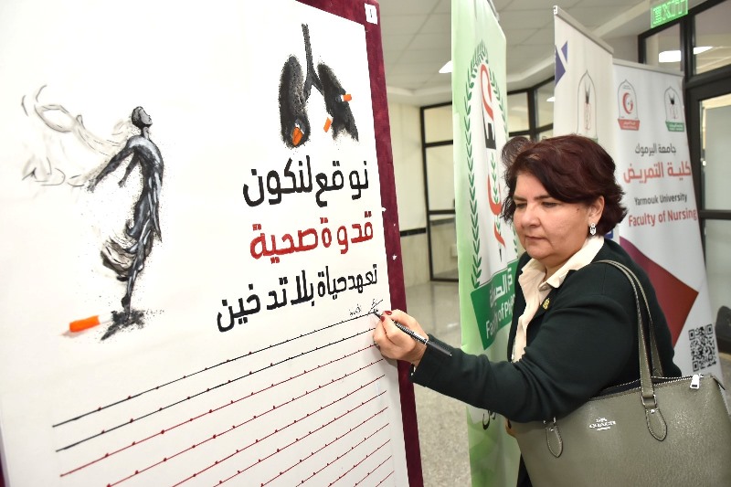 وأضافت إننا في جامعة اليرموك نؤكد التزامنا المستمر بدعم المبادرات التي تسعى إلى الحد من ظاهرة التدخين، بنشر التوعية المبنية على الأدلة العلمية، وتعزيز الأنظمة والتعليمات التي تضمن بيئة جامعية صحية، ودعم البرامج التي تساعد على الإقلاع عن التدخين، وتشجيع الطلبة ليكونوا شركاء فاعلين في إحداث التغيير.