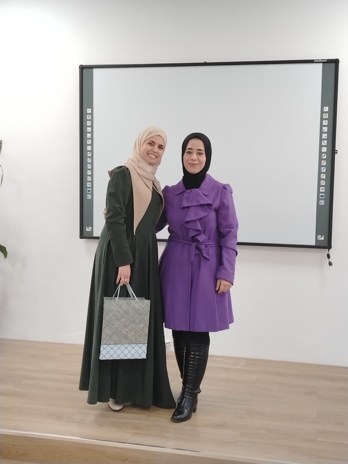 At the conclusion of the event, the Faculty distributed in-kind gifts to all students, consisting of Eid clothing and related essentials. The distribution was carried out under the supervision of members of the organizing team, Ms. Abeer Baroud, Director of the Center, Ms. Eman Al-Raqab, Health Programs Supervisor at the Center, as well as representatives from the Deanship of Student Affairs and the Princess Basma Center for Jordanian Women’s Studies.