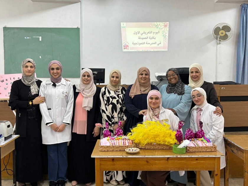 The event was initiated by faculty members Prof. Alaa Al-Jabali, Dr. Aseel Rataan, Dr. Haneen Amawi, Dr. Ghaith Al-Taani, pharmacist Lorca Al-Zubi, pharmacist Yasmine Al-Hamzat, and pharmacist Alaa Al-Qudah, with the participation of pharmacy graduate Baraah Al-Refai and distinguished students Salma Eideri and Dania Anaqrah. Computer lab technician Hala Ali also provided technical and digital support for the event.