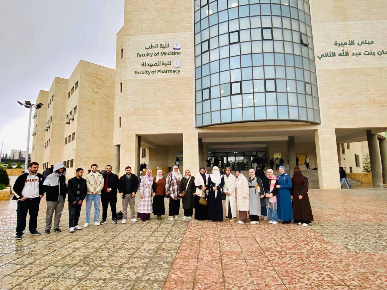 The visit was organized under the supervision of a group of faculty members from the Faculty of Pharmacy, including Dr. Mariam Al-Ameri, Dr. Aseel Rataan, Dr. Mariam Ruzaiq, Dr. Haneen Amawi, Prof. Osama Abu Al-Rub, Dr. Amal Albawaana, Dr. Sumaya Abuloha, and Prof. Omar Qumoh, in addition to pharmacist Bayan Malkawi and Ms. Wafaa Al-Awad, who all contributed to supervising the students and organizing the activities of the visit. This visit comes as part of the college’s extracurricular activities plan, which it is keen to implement in order to strengthen the integration between the theoretical and practical aspects of education, and to contribute to preparing students who possess both humanitarian and professional awareness and are capable of serving their community with competence and responsibility.